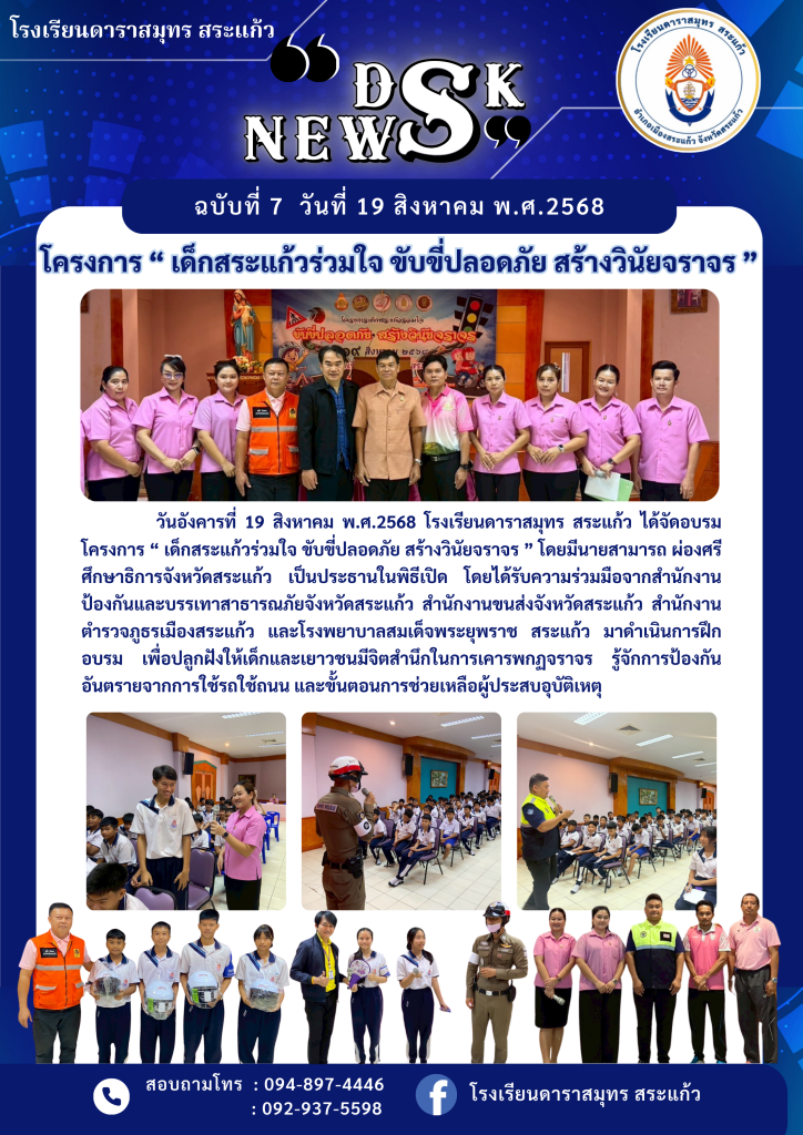 การดำเนินงานความปลอดภัยในโรงเรียนดาราสมุทร สระแก้ว