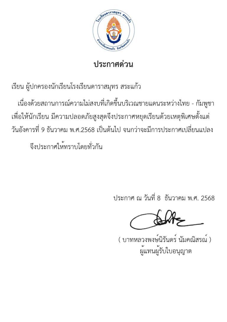 ประกาศหยุดเรียนด้วยเหตุพิเศษ